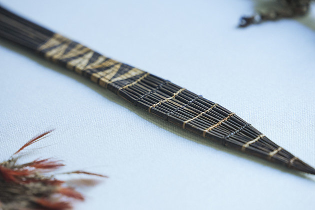 木や鳥の羽根、貝殻といった身近な素材を使って作られた櫛からは、