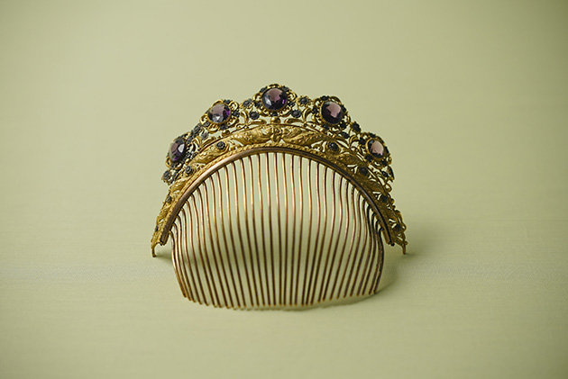 花文透かし彫りアメジストつき金属製櫛 1820〜30年頃